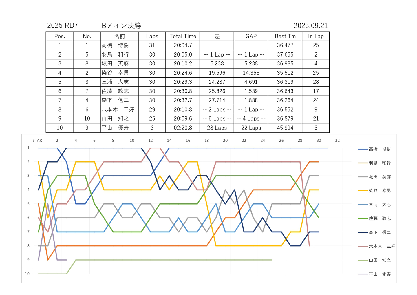 [1231] 第7戦Bメイン結果 - 2025/09/24(Wed)