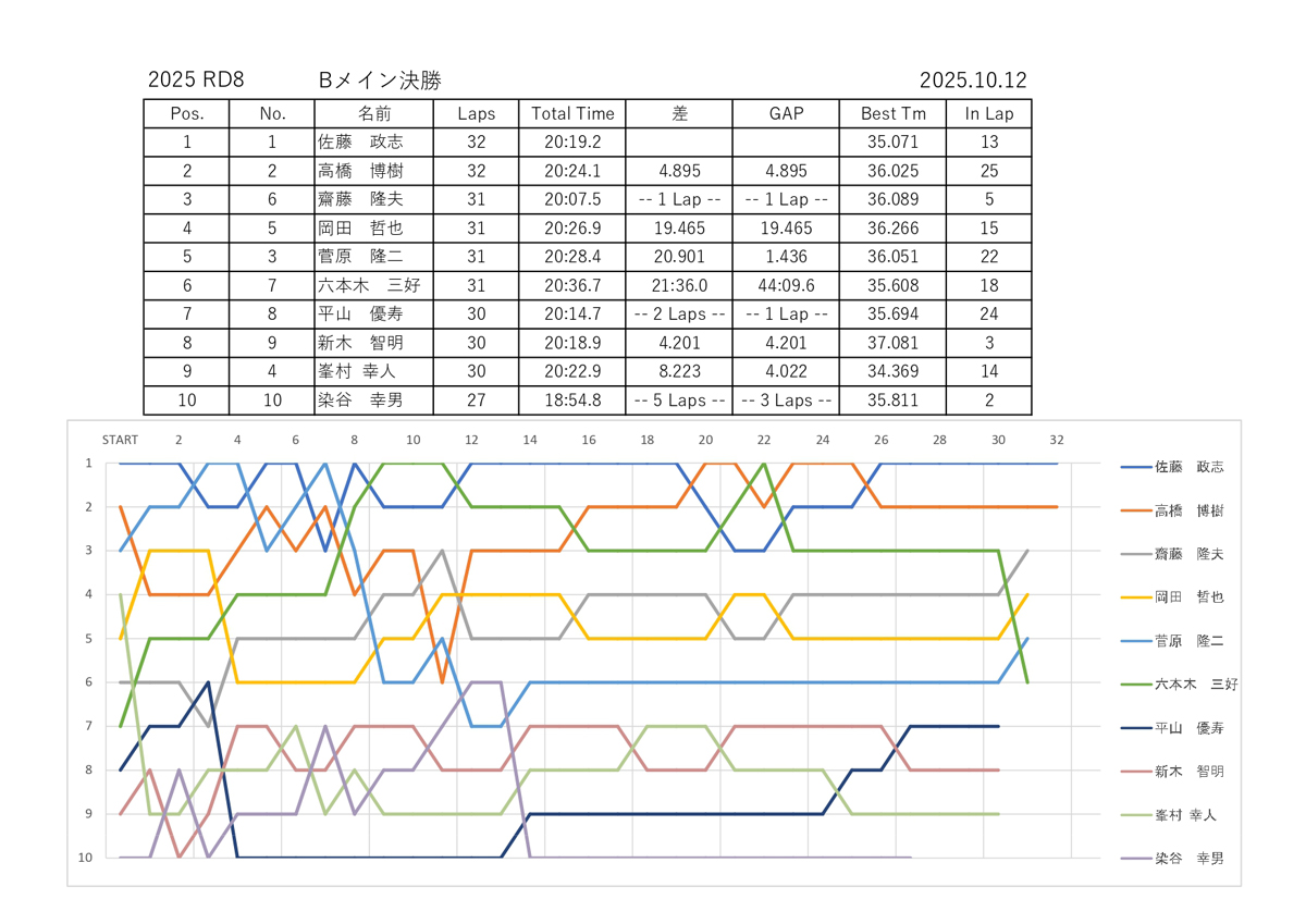 [1237] 第8戦Bメイン結果 - 2025/10/17(Fri)