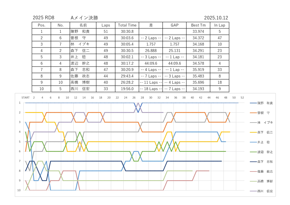[1238] 第8戦Aメイン結果 - 2025/10/17(Fri)